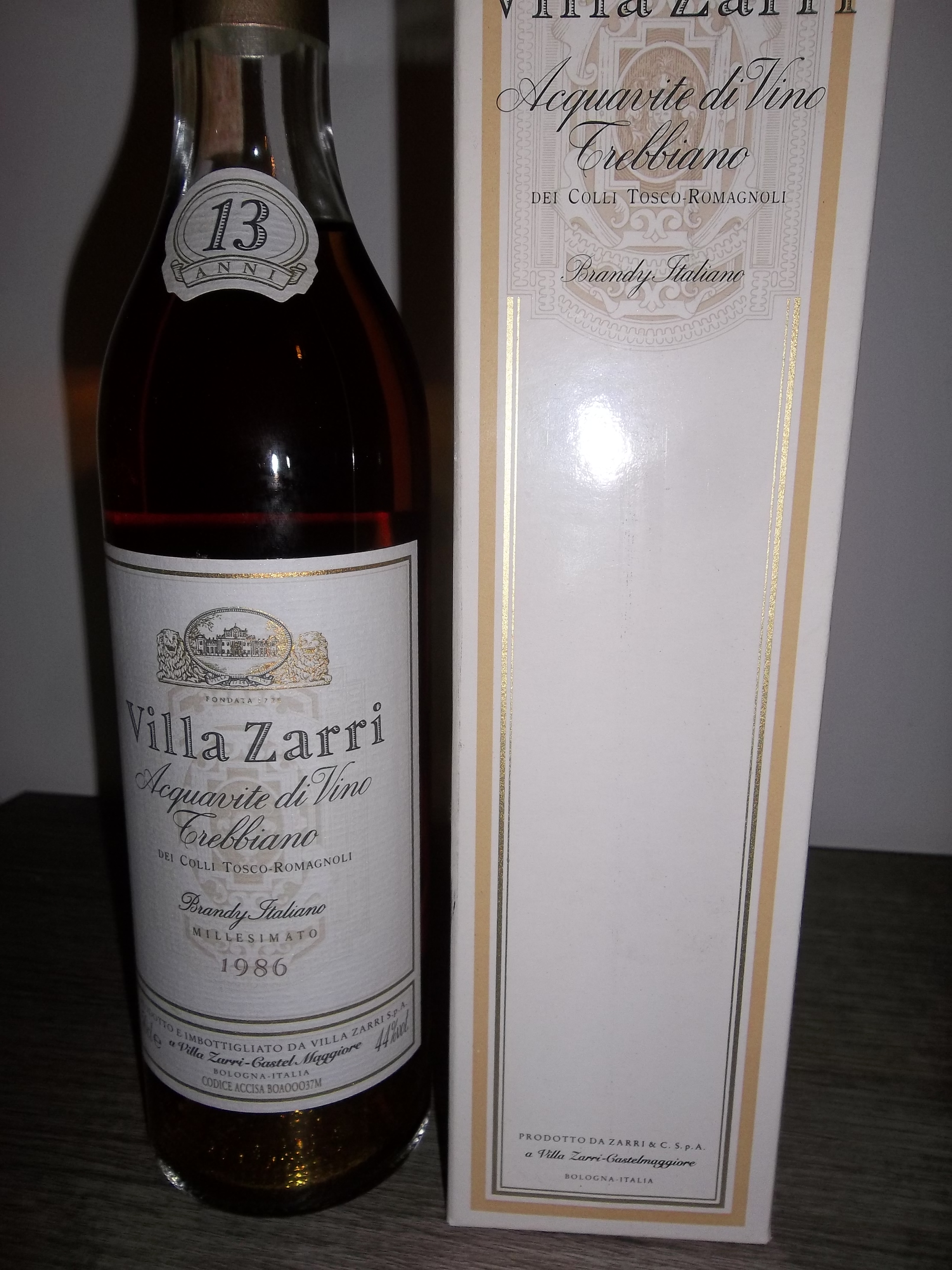 Per chi è interessato ho disponibili 3 bottiglie da 50cl di brandy Villa Zarri 13 anni, distillato nel 1986 (prima campagna di distillazione di Guido Fini Zarri) e imbottigliato nel 2000 a 44%,